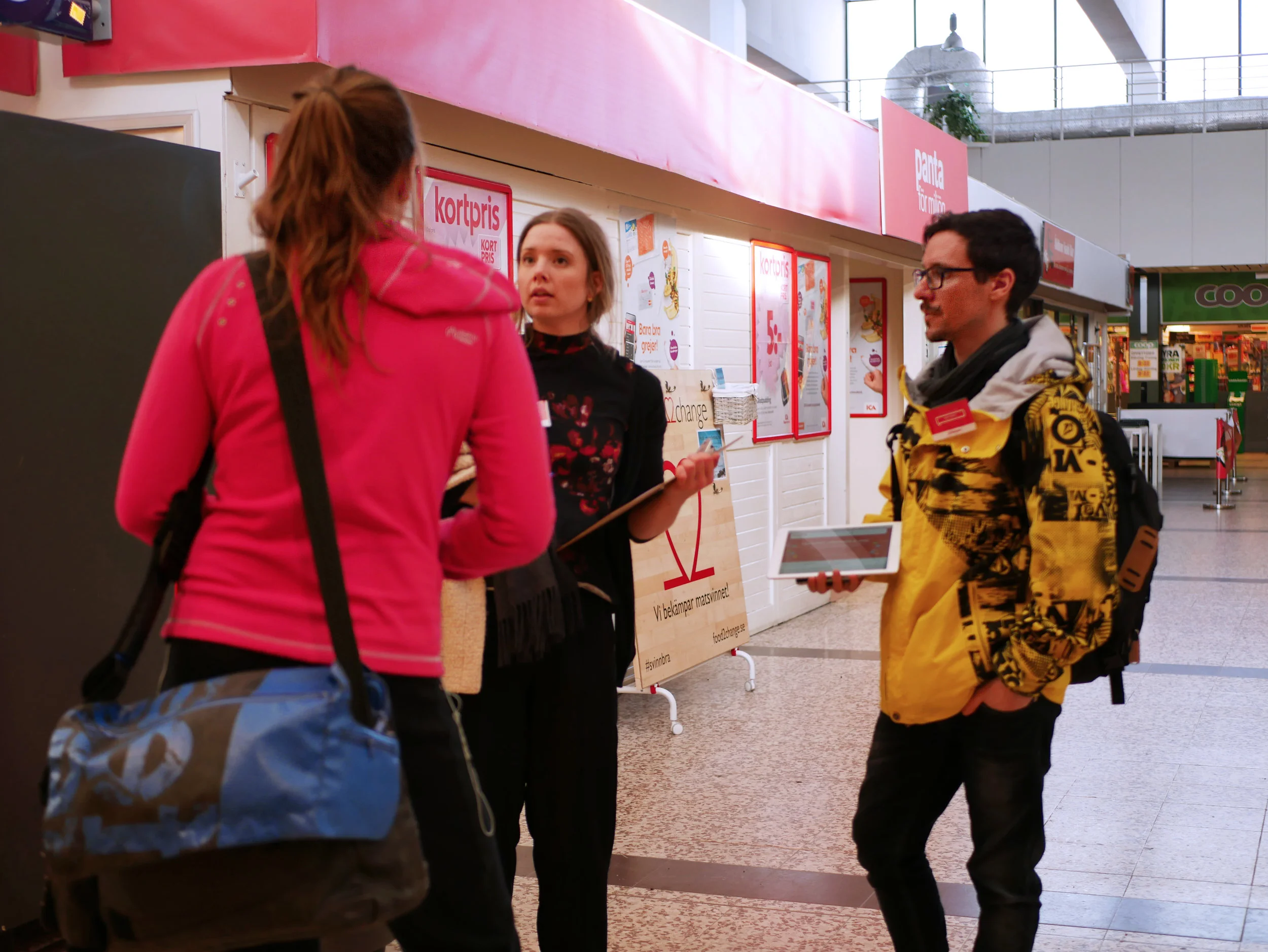 This project was done in cooperation with the municipality of Umeå. We were given the task to design an exhibition for co-creation and apply critical design-thinking. Throughout the whole design process we iterated and staged a service for the public with different probes and provo-types.