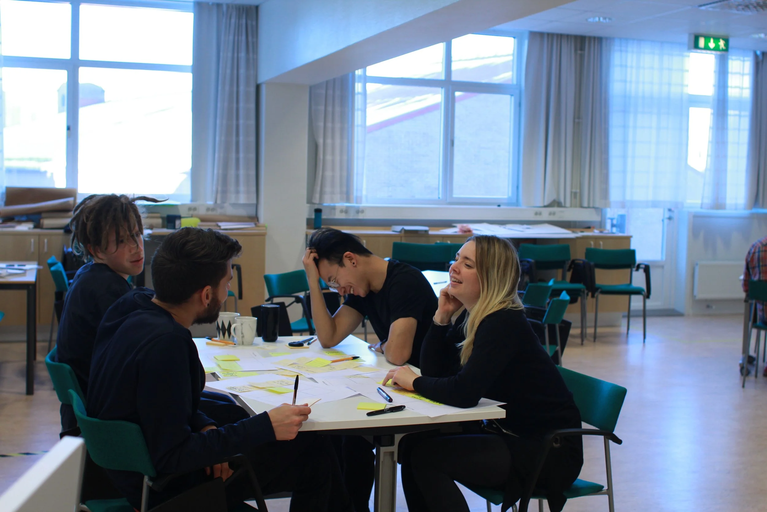 We held a co-creative and public workshop at Bildmuseet museum. People got to test out our lo-fi prototypes, such as a moving and interactive lamp, negative brainstorming cards (what would make you sit down more at work?) and also a noise sound prototype as distraction with speakers to observe peoples reaction.